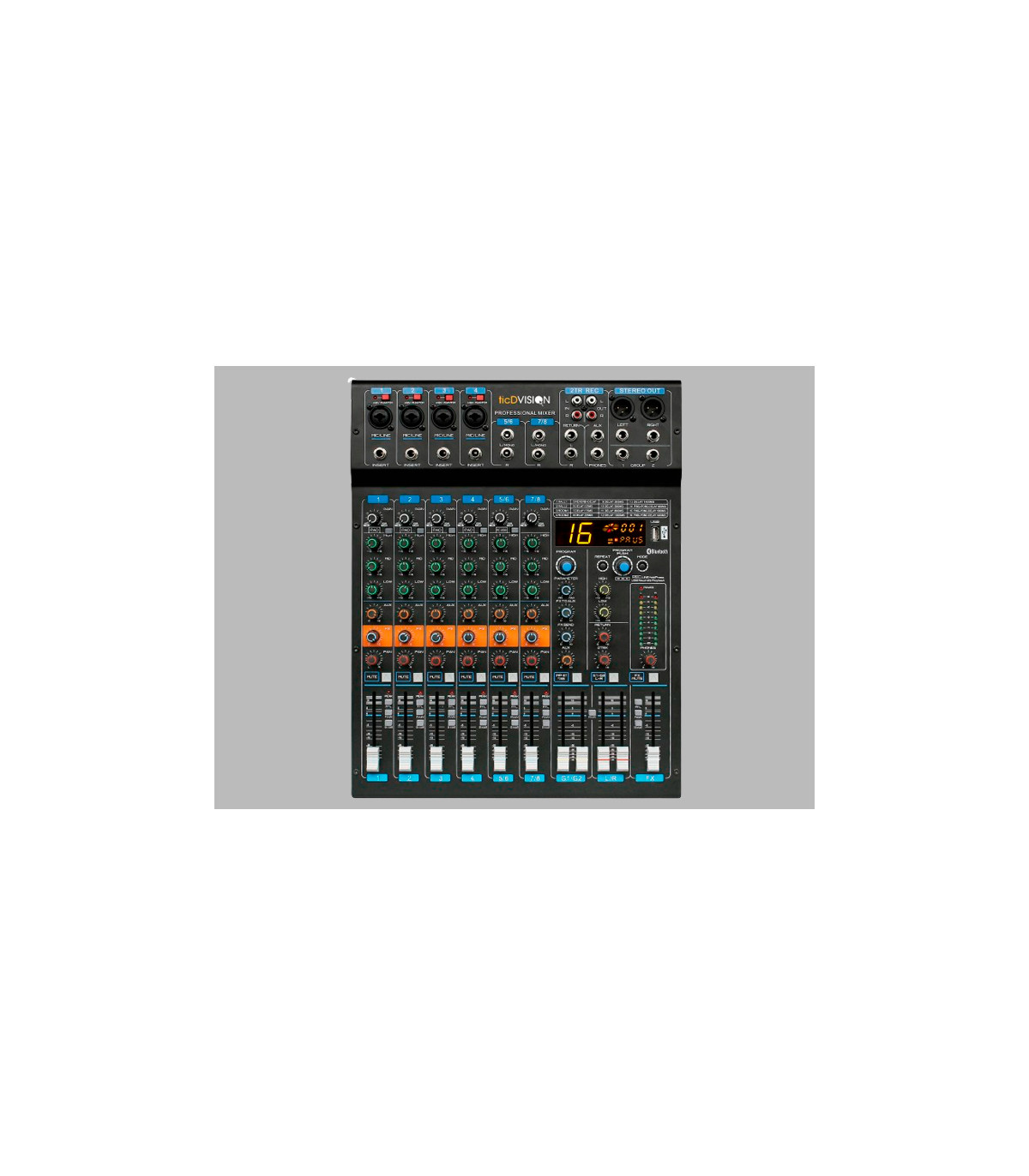 En resumen, el 8 Line Channel Mixer es una elección destacada para aquellos que buscan un mezclador versátil y potente con características avanzadas, ideal tanto para presentaciones en vivo como para sesiones de grabación profesional.