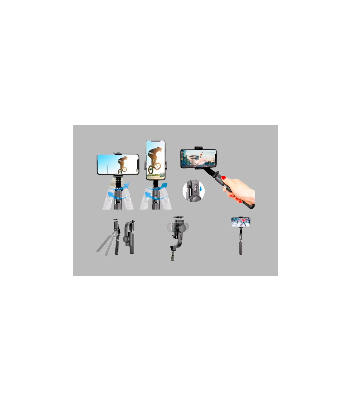 Estabilizador para smartphone con trípode de palo de selfie, estable y anti-vibración, ideal para vídeos en directo y fotos estables, con comando a distancia oculto y diseño compacto.