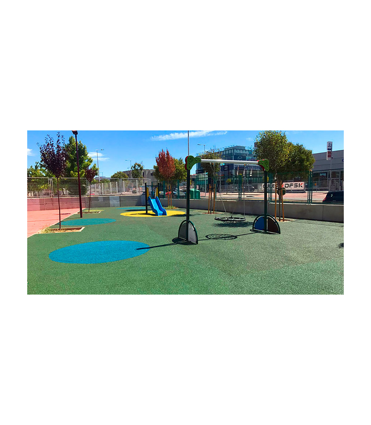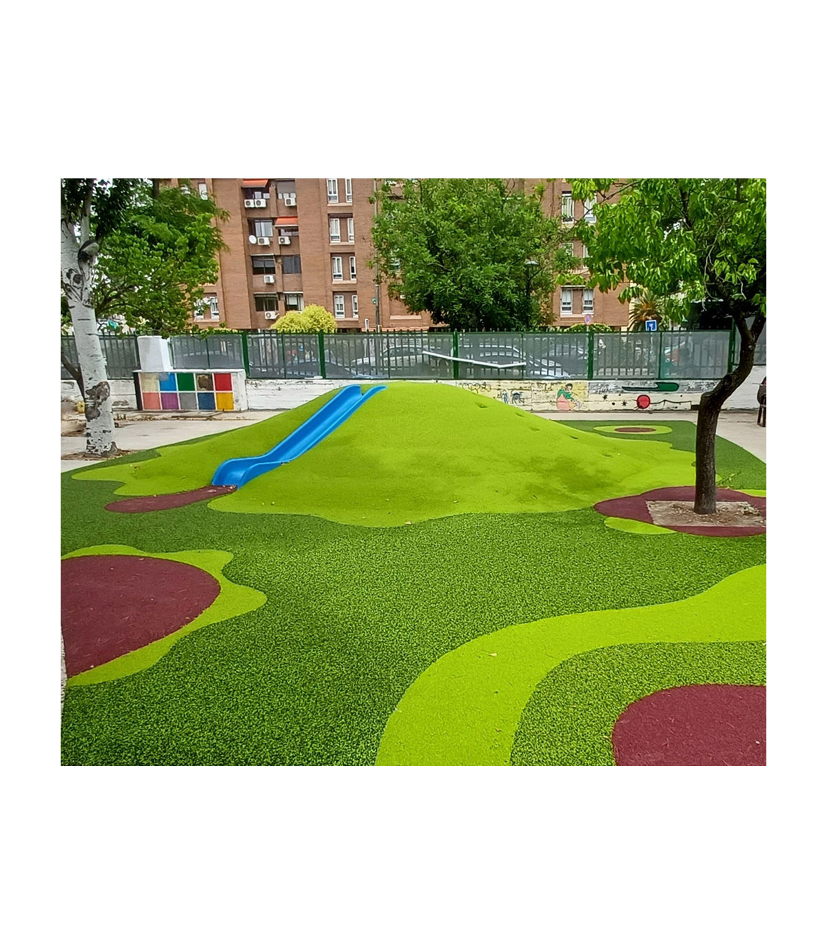 El suelo continuo de caucho es un pavimento de alta resistencia compuesto por dos capas de caucho moldeadas e instaladas directamente in situ. Especialmente diseñado para zonas de juegos infantiles, patios de colegios y áreas recreativas al aire libre, proporciona una superficie amortiguadora de impactos que mejora la seguridad de los usuarios, especialmente de los más pequeños.