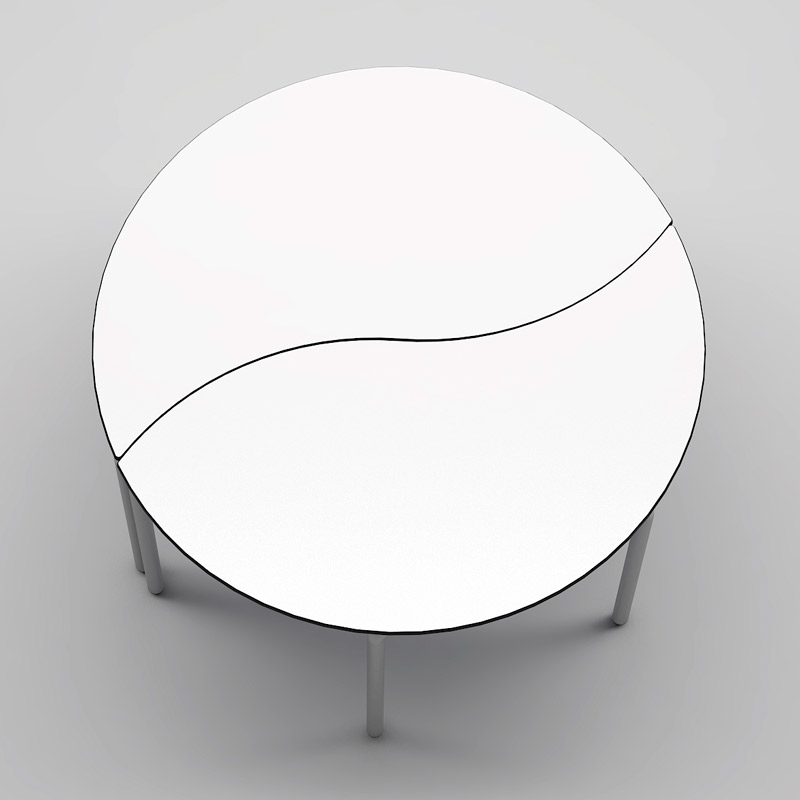 Mesa escolar con estructura metálica y acabado en color blanco, para equipar aulas de aprendizaje cooperativo.